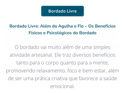 Aqui, você poderá trocar ideias, tirar dúvidas e compartilhar inspirações com pessoas apaixonadas por Bordado Livre, assim como você.
